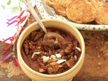 1. Osoľte stehná a odložte ich. Do hrnca s pokrievkou dajte koreniny a bylinky spolu s vínom a melasou. Znížte teplotu na stredne nízku. Predhrejte...